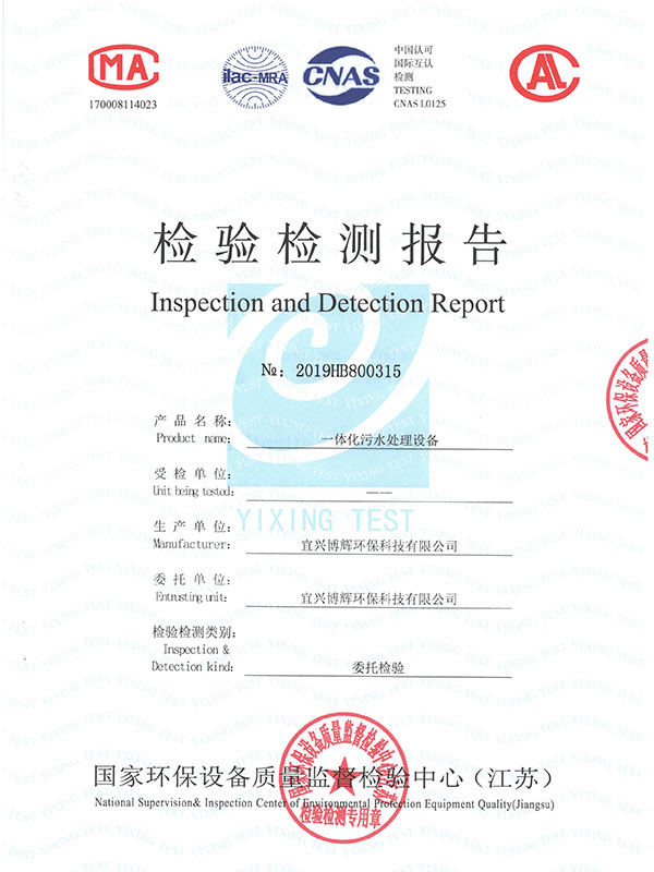 一體化污水處理設(shè)備檢驗檢測報告